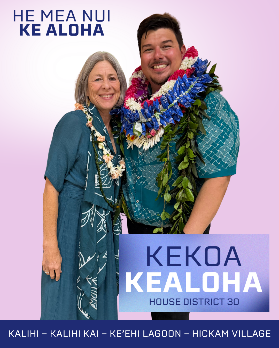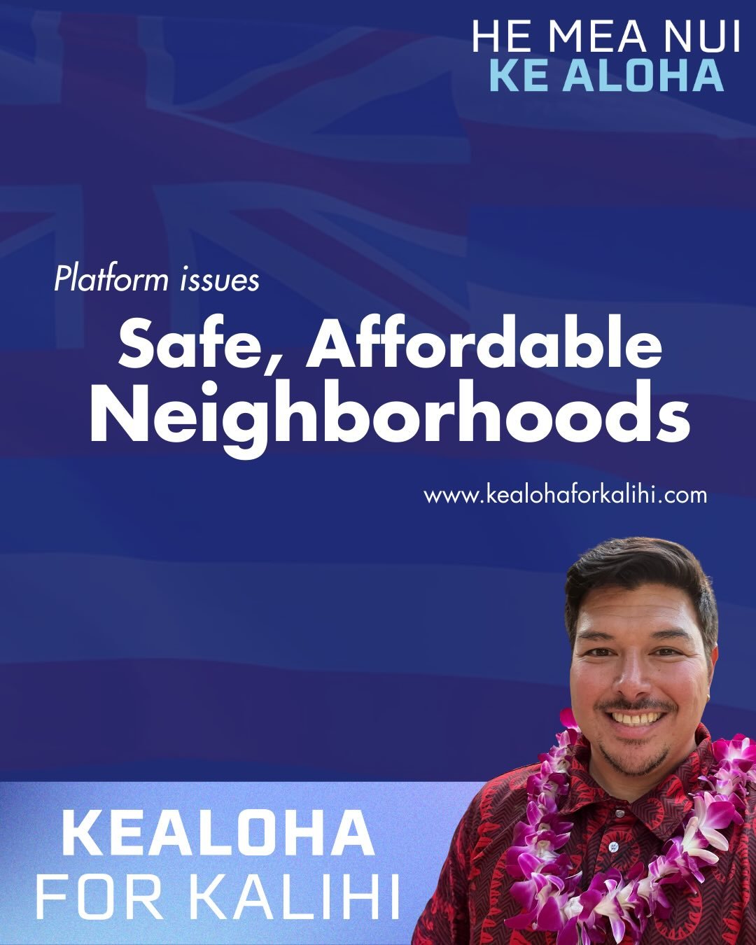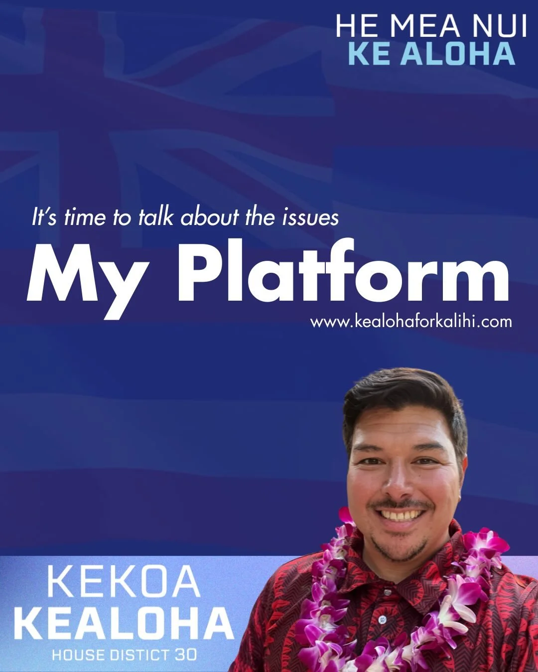 Aloha, I’m Kekoa Kealoha, and I’m running to represent House District 30 because I believe Kalihi deserves stability, independence, and opportunity. I see a unique moment for us to become more self-reliant—building strong, local systems that don’t depend on shifting political priorities.